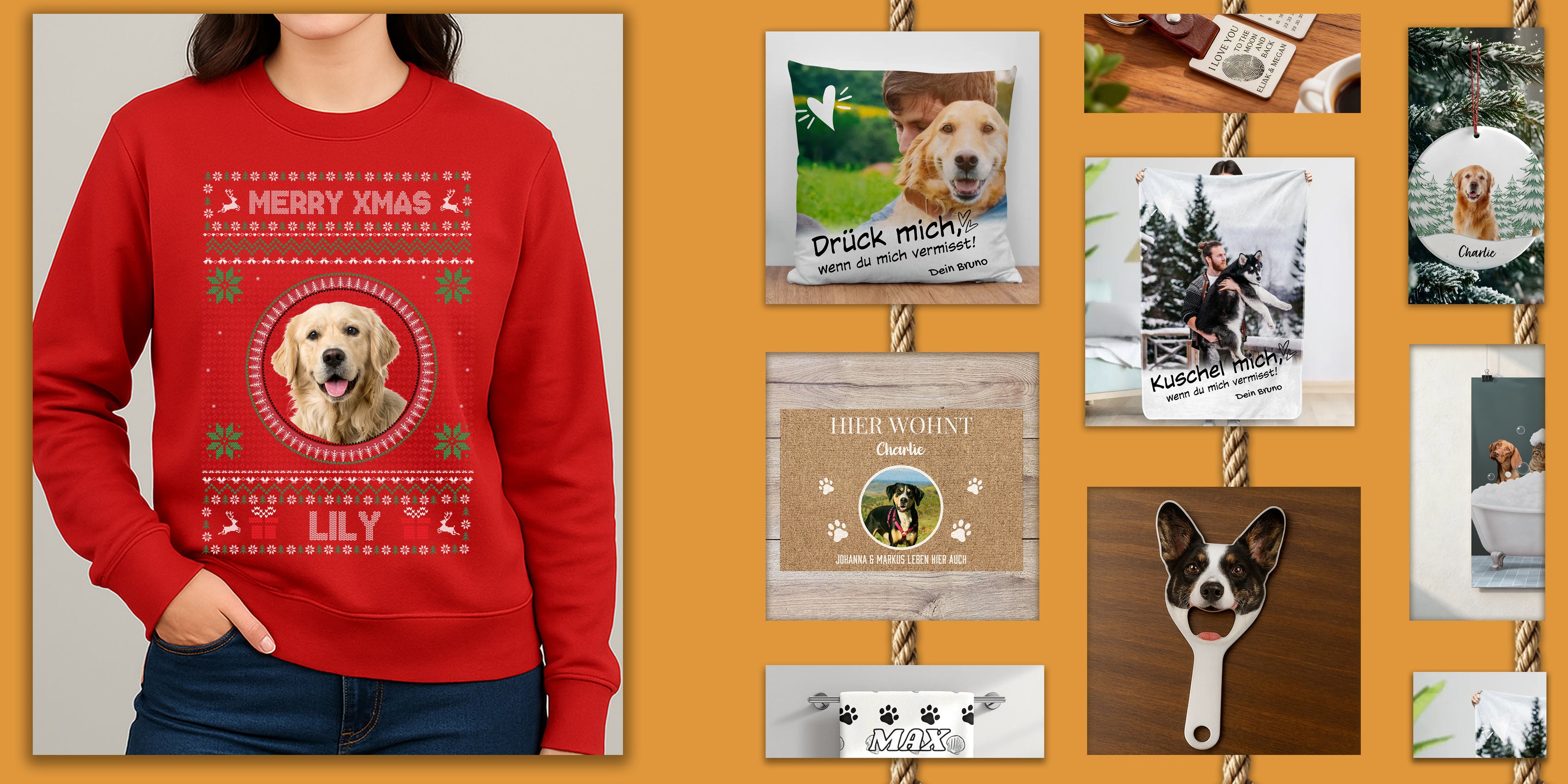 Bei uns findest du eine große Auswahl an personalisierbaren Artikeln wie Fußmatten, Kissen, Decken, T-Shirts, Hoodies und vieles mehr – alle speziell für Haustierliebhaber.