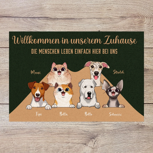 Pärchen mit Haustier - Personalisierte Fußmatte